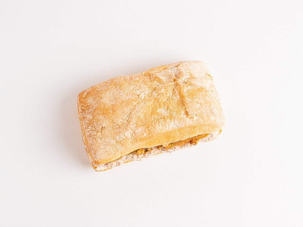 • Мягкая чиабатта с сочным тунцом, перемешанным с майонезом, чесноком и лёгким сливочным сыром.